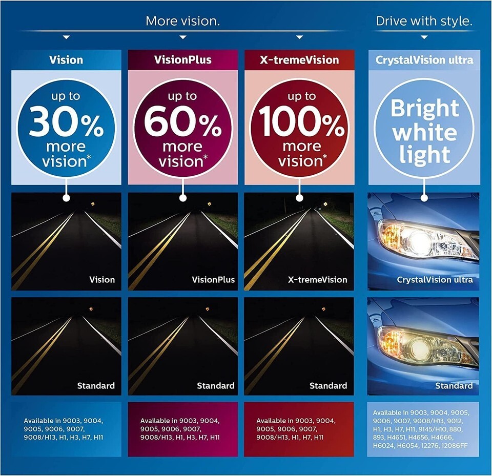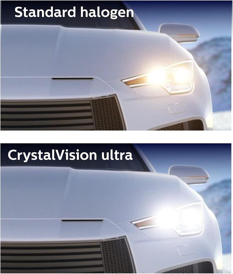 ? See more product details Philips CrystalVision ultra is for drivers seeking to personalize their vehicles. With CrystalVision ultra, drivers enjoy a look that is unmatched in a DOT compliant bulb. CrystalVision ultra provides a bright white light on the road at night, while its blue-capped bulb creates a cool blue effect in the headlight in the daytime. This is the perfect choice if you're looking to add style to your vehicle.