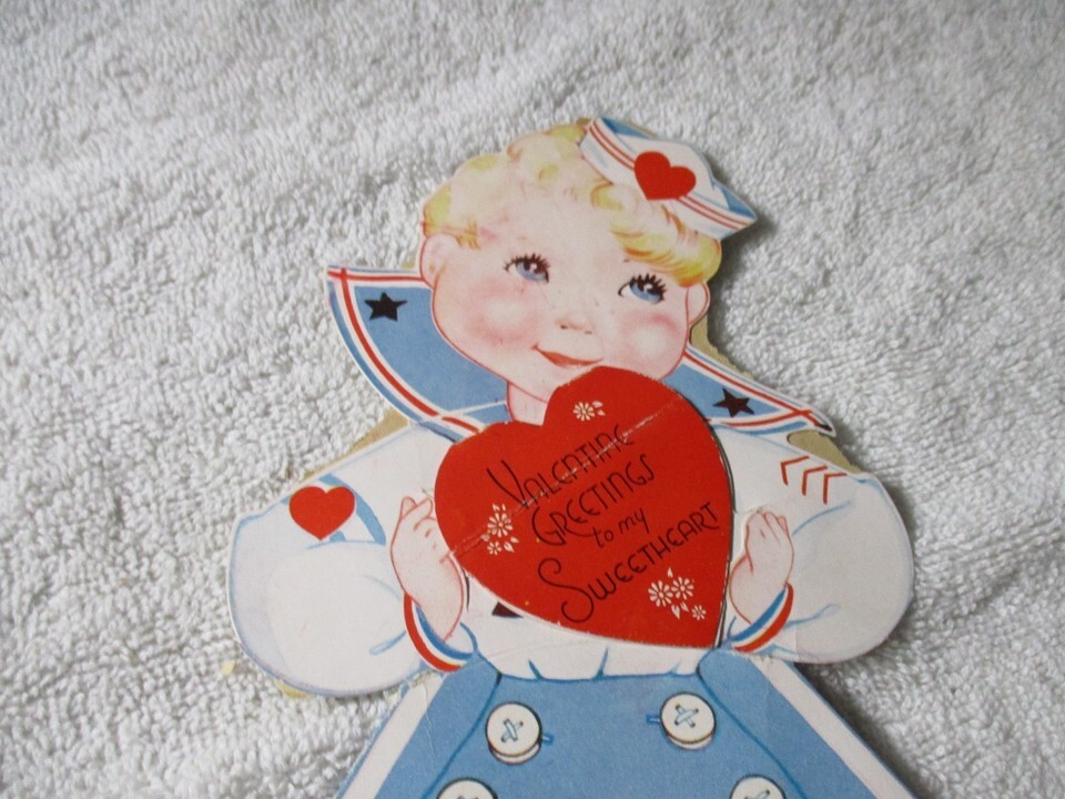 Vintage 1943 large sailor boy Valentine Card and similar items