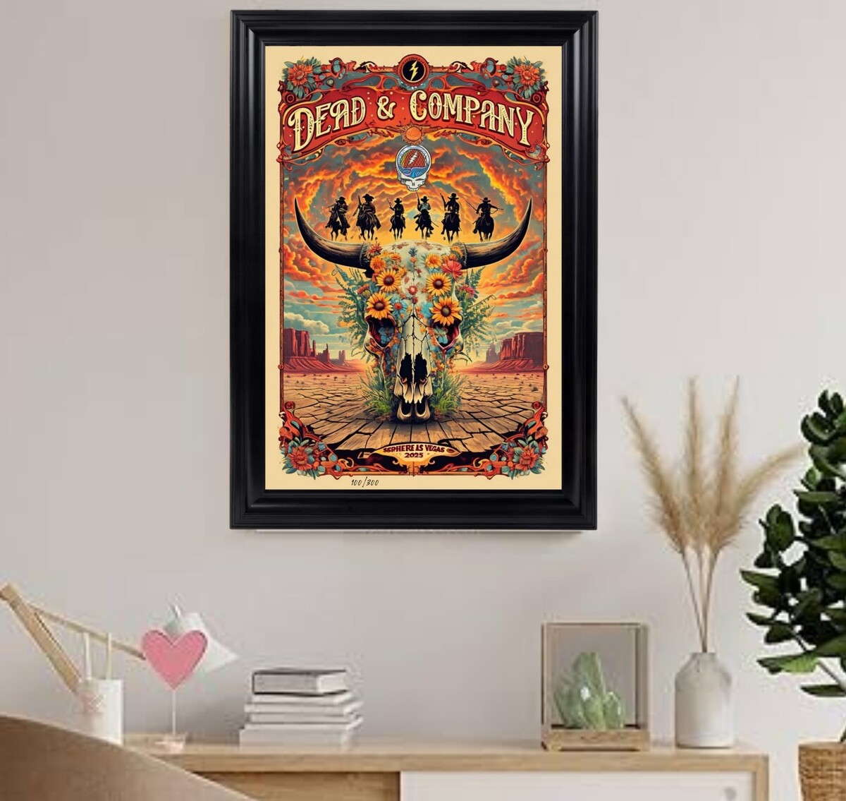 # 100 The product is a limited-edition Jaye Metcalfe 2025 Dead Company poster featuring the Grateful Dead. This original poster, measuring 24x36 inches, was created in the United States and is a must-have for any music memorabilia collector. With only 300 copies in existence, this rock and pop genre poster captures the essence of the iconic band and their loyal fans.