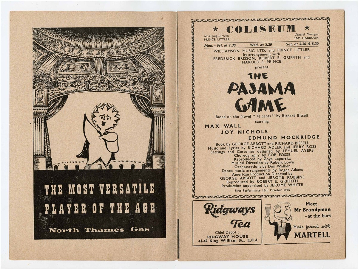 The Pajama Game Program . From the Coliseum in London England in 1955 . Starring Max Wall and Joy Nichols