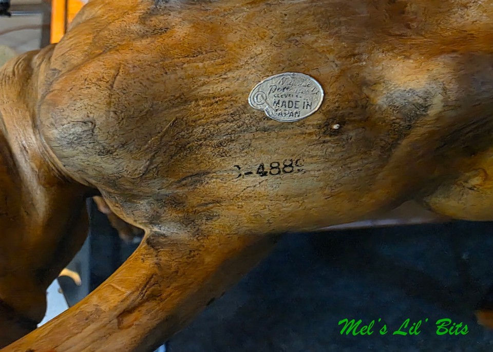 It is a matte glaze with dark detail to enhance the muscles and has glossy horns.