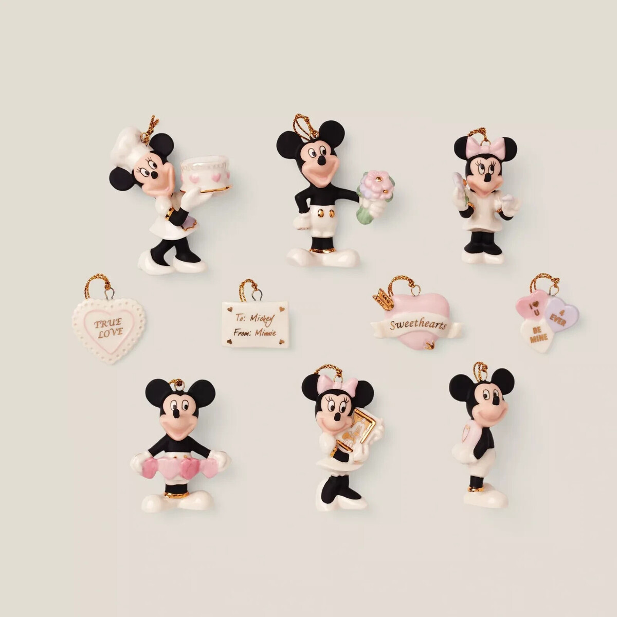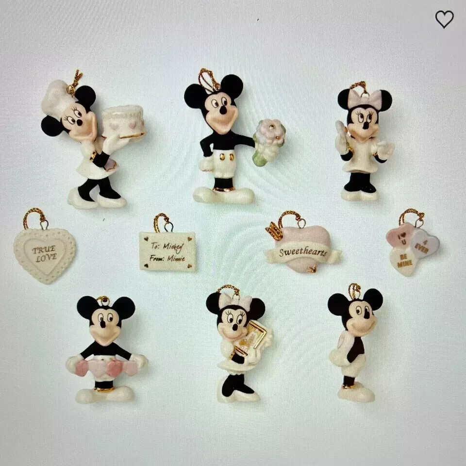 Lenox Disney Mickey Minnie Mouse Mini Tree Ornaments Set 10 Romantic Moments NEW