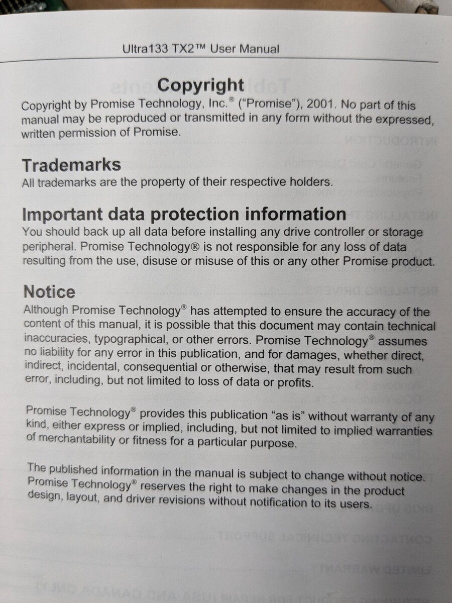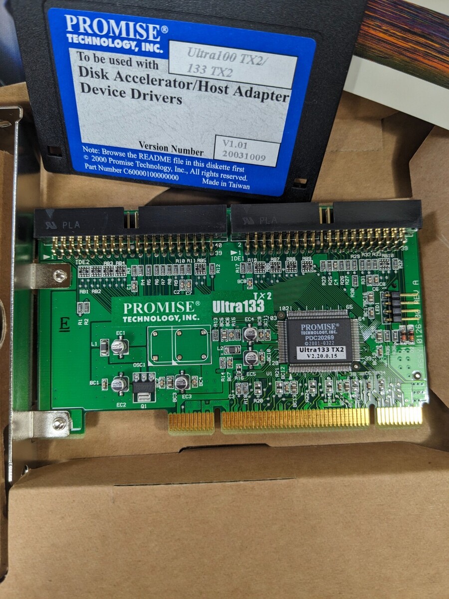 Promise Ultra 133 TX2 UDMA 2xIDE PCI Controller Card w/ Box Manual UNTESTED