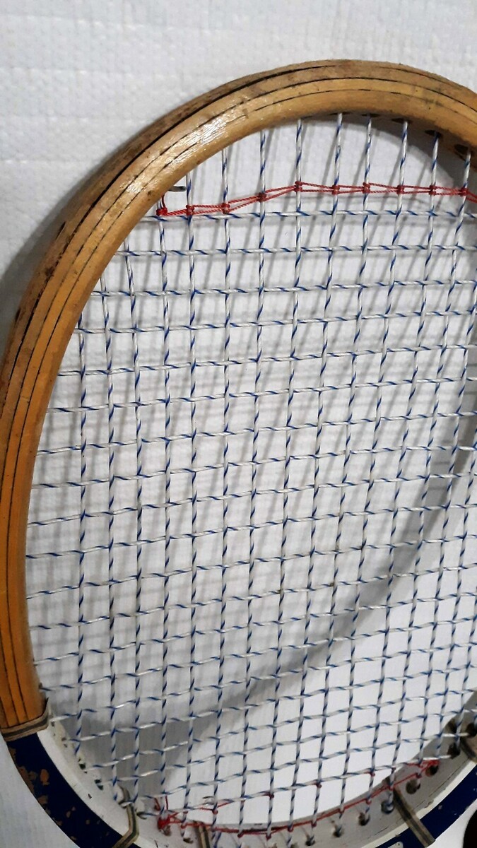 RARE FIND! Vintage racket, great display piece with blue graphic. Racket has issues with cracking and splitting as shown. Comes with racket protector. 4 5/8 grip size. Great collectors or decor item. See pics for details. Please let me know if you have any questions.