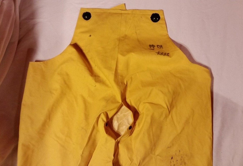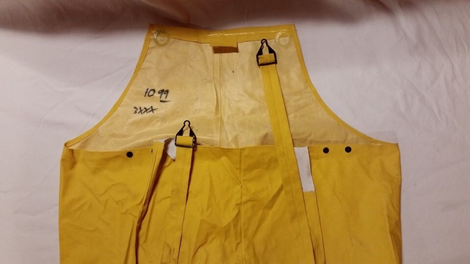 DARK YELLOW XXXL 3XLRG 43X30.5 PULL ON WET RAIN SUIT PANTS BOTTOMS SUSPENDERS