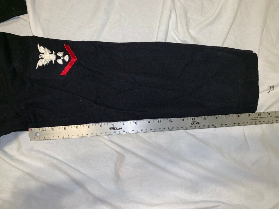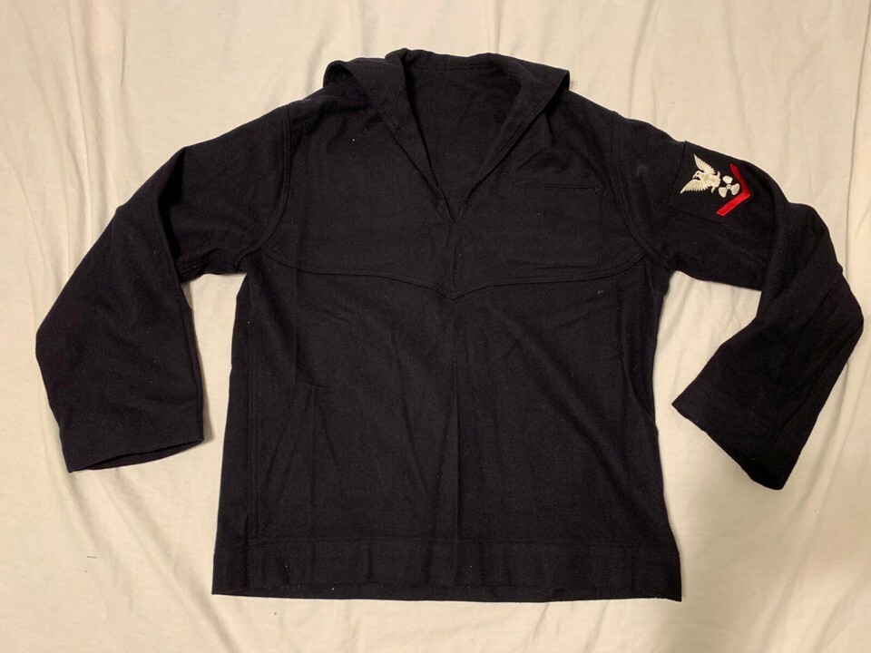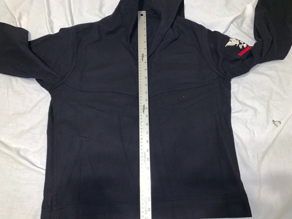 Our MILITARY TOPS are 100 percent Authentic US NAVY CRACKER JACK JUMPER , we take pride in selling some of the most Authentic Military Gear known in the Industry, Each Item has a size Label in each one of them , However we go one extra step and provide exact measurements in our pictures, we provide measurements for the Chest, arm length, and length. We wash each Item Twice, we will list every defect in our Auction. Each Top has been Inspected and although some have minor issues we pride our sales on showing every Inch in our pictures. Thank you for looking at our Store, we have sold over 10,000 Assorted Military Jackets, Tops, and Shirts, and have feedback from our customers to back up our quality, please take a quick minute to check out our feedback for the Military Gear we have sold.