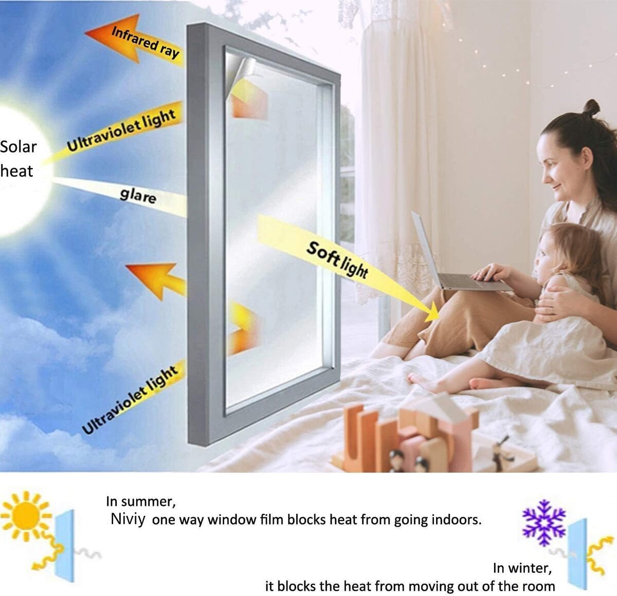 Niviy One Way Window Film Privacy Mirror Self-Adhesive Tint UV Heat Blocking 80C
