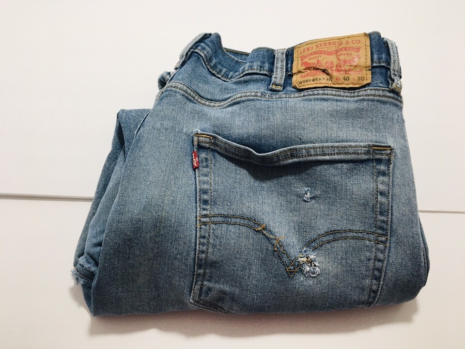 VINTAGE Levis Jeans Men's 40 x 30 WORKWEAR FIT Denim Blue Jeans Distressing