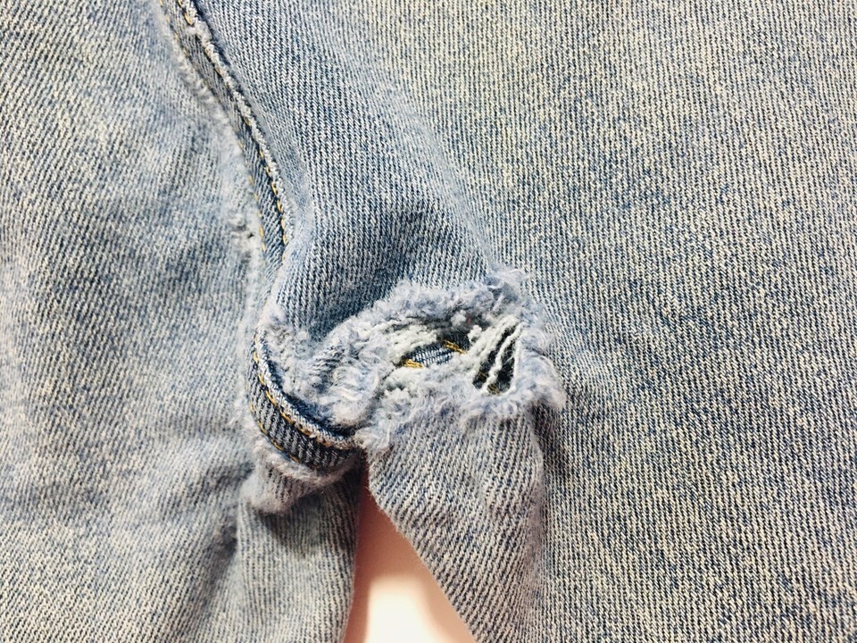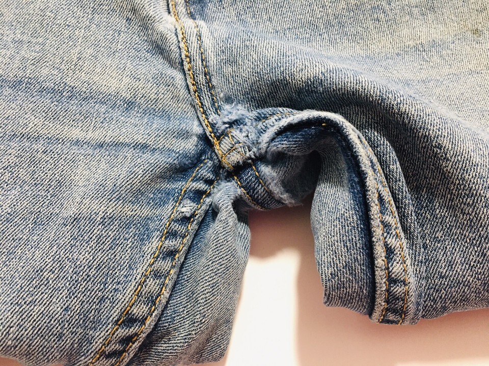 Good worn denim. Some distressing/holes in crotch area and back pocket see all pictures.