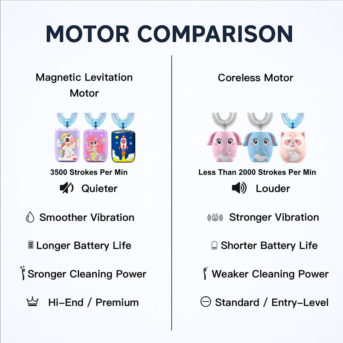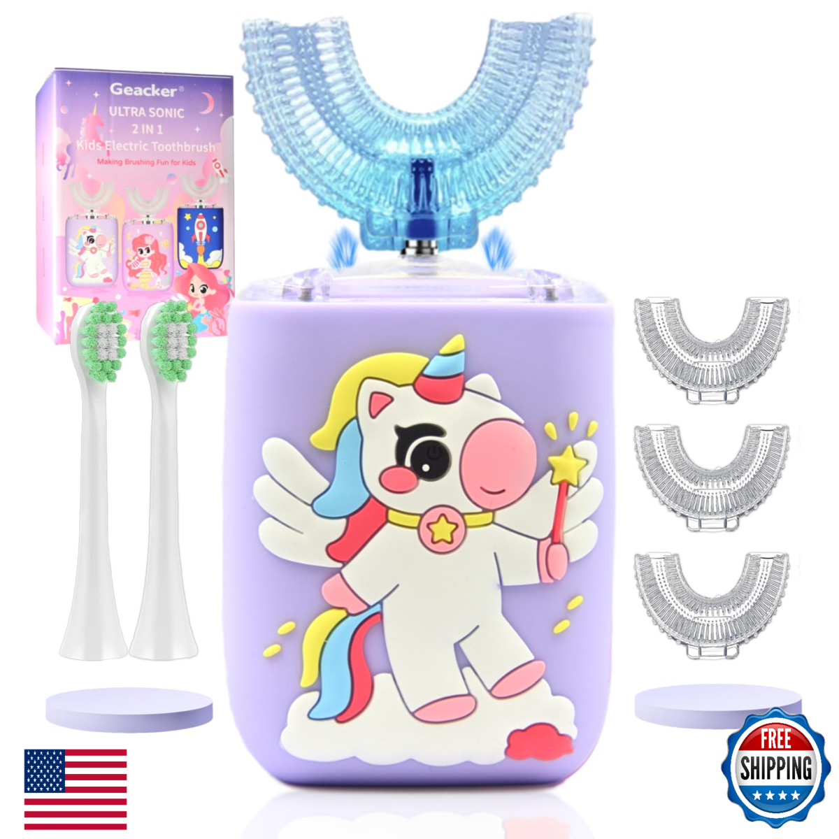1. ? Unicorn Theme Makes Brushing Fun Encourage healthy habits with a colorful unicorn design kids love. Designed for toddlers and children aged 2 to 14, especially girls who enjoy fantasy and bright colors.,2. ? Includes 3 U Heads + 2 Soft Brush Heads Offers both full-mouth U-shaped cleaning and classic brushing options. Perfect for toddlers learning to brush and older kids developing technique.,3. ? Gentle Sonic Vibrations + Smart Timer Equipped with a magnetic motor for smooth, quiet brushing. The 45-second timer helps children brush the right amount of time each session.,4. ? Rechargeable Safe for Daily Use No batteries required. The built-in rechargeable system and BPA-free materials make this toothbrush ideal for home, school, or travel.,5. ? Great Gift for Girls Toddlers Whether it?s for birthdays, school prep, or daily brushing, this electric toothbrush is a thoughtful gift for young unicorn fans looking for a soft, comfortable brush.