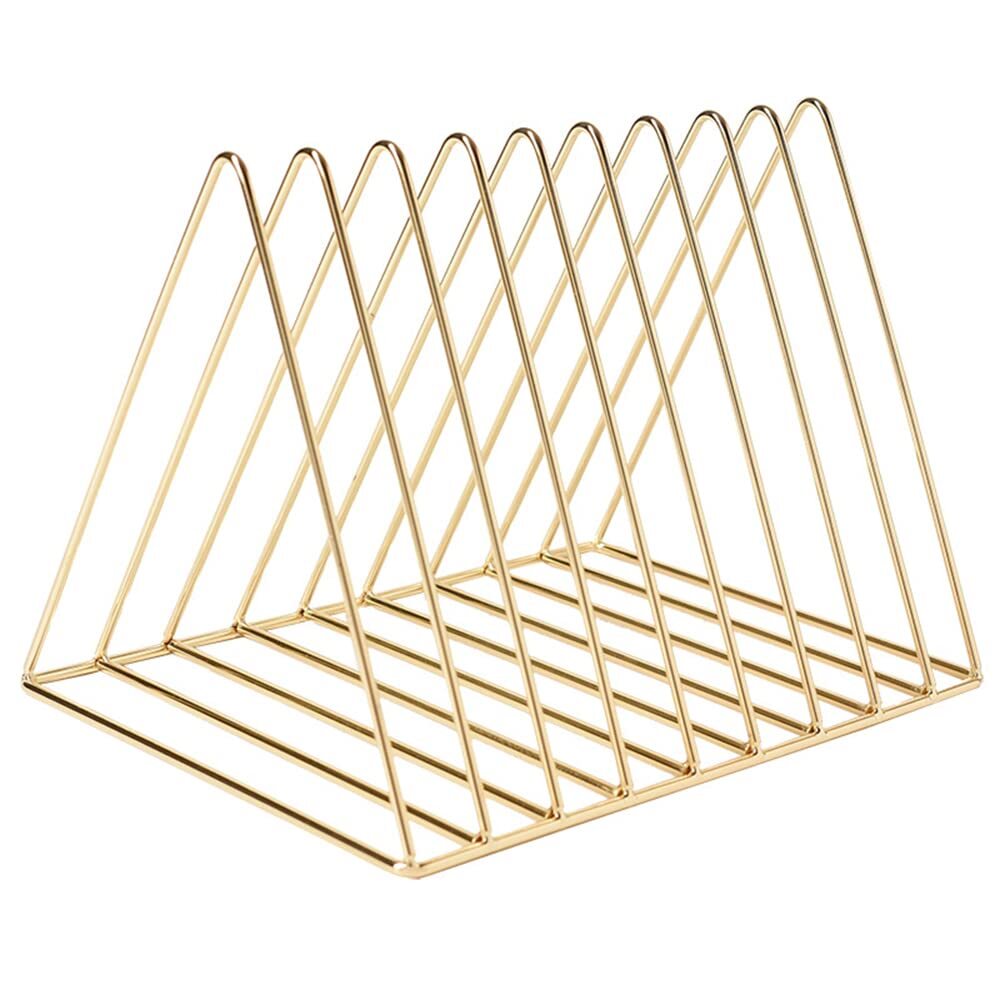 Sturdy and durable- Made of high quality iron wire welding,sturdy,durable,unpliant and easy to clean. Triangle shape maintains great stability,not easy to lean and fall over.Dimensions (in inches) - 10.2?L X 7?W X 6.9?H.There are 5 colours for you to choose:Gold, Rose Gold,White,Black,Silvery,Simple and Beautiful - The surface is electroplated to make it decorative and anticorrosive, shiny and elegant.Artificial welding technology,very suitable for decoration,looks practical and high end.,9 Slot Organizer - It can help you to categorize magazines,books,files,folders,newspapers,mails,books,notebook pad and other items, reducing your desk clutter down to almost zero, keeping your desktop neat and tidy.,Suitable for many occasions - Suitable for home, office, waiting rooms, break rooms school and so on,you could put it anywhere you want.,CUSTOMER SATISFACTION GUARANTEED :If quality and Transport damage problems can choose a replacement or refund,you can enjoy unconditional return and refund serivce.