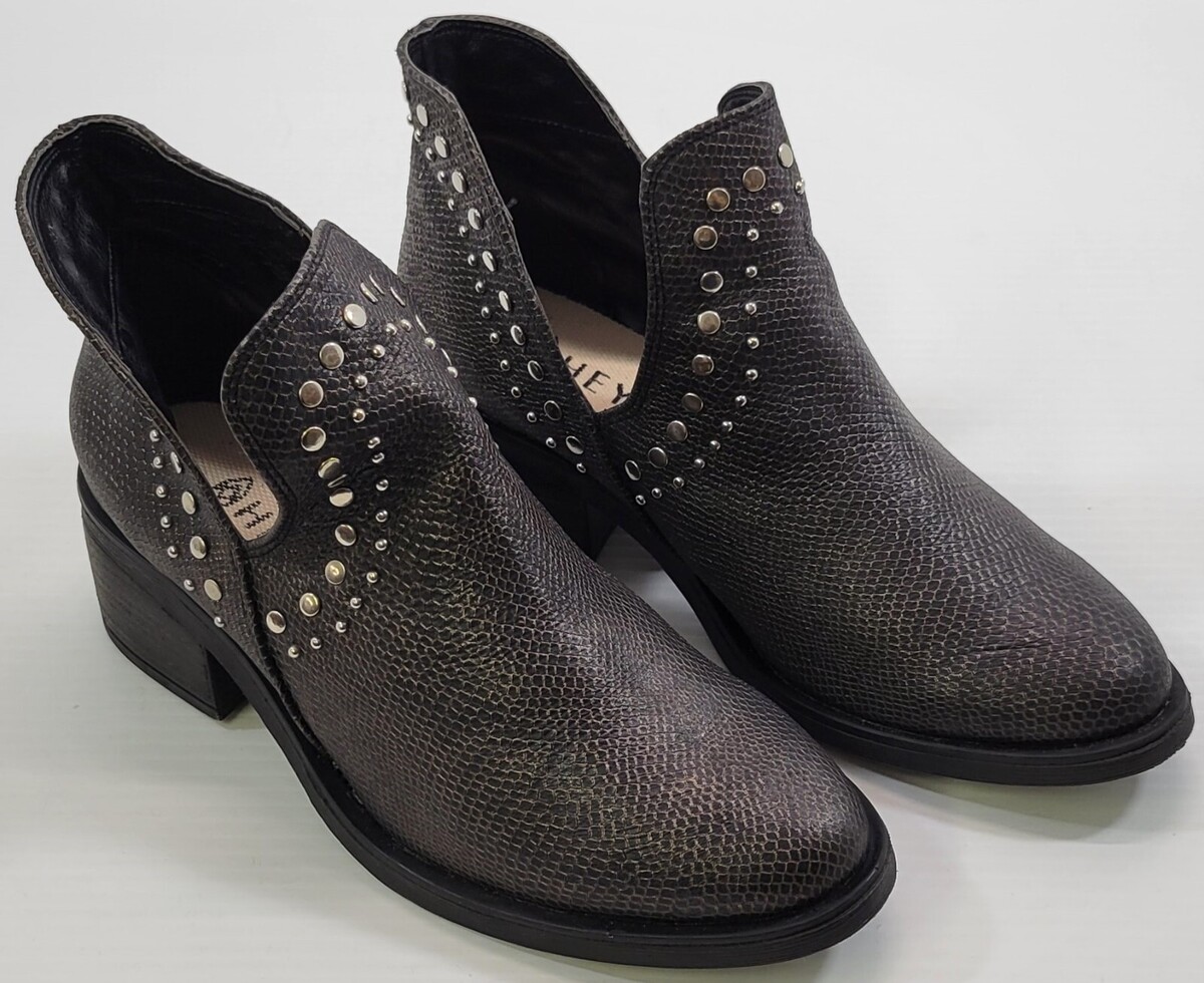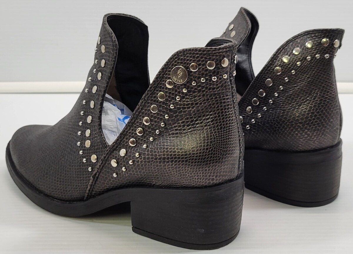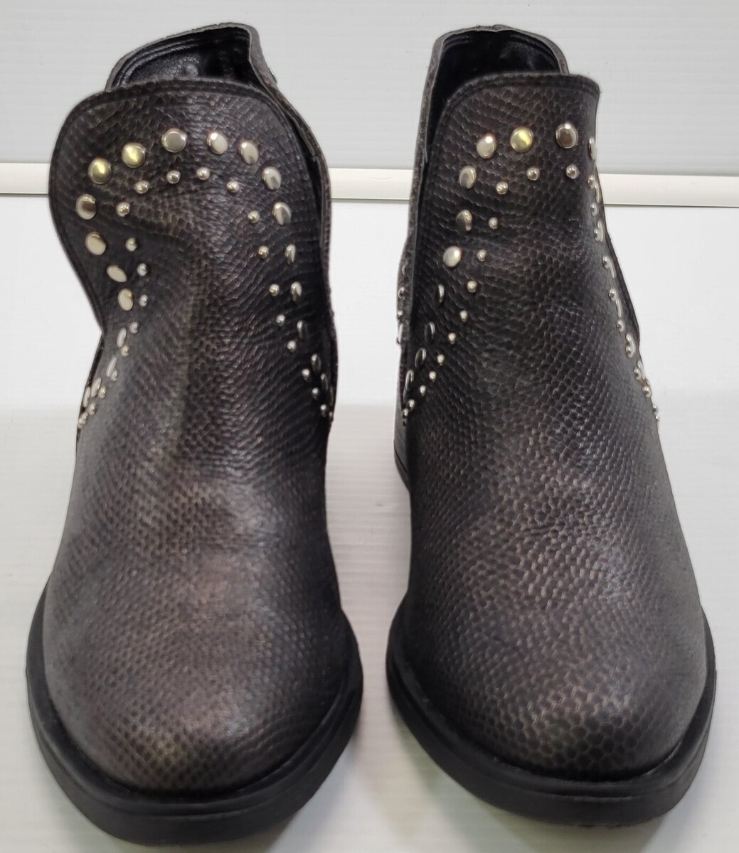 *MT) Heyas Ladies Chunky Leather Ankle Slip-On Studded Boots Size 9