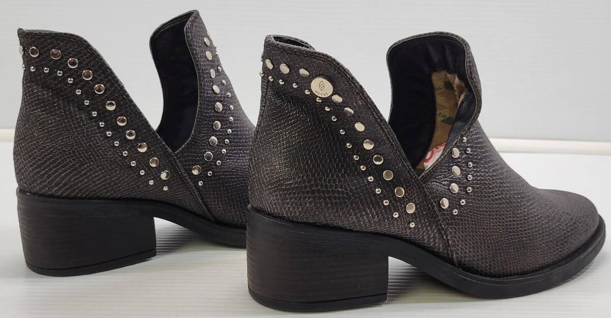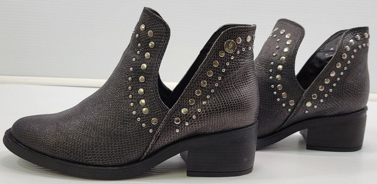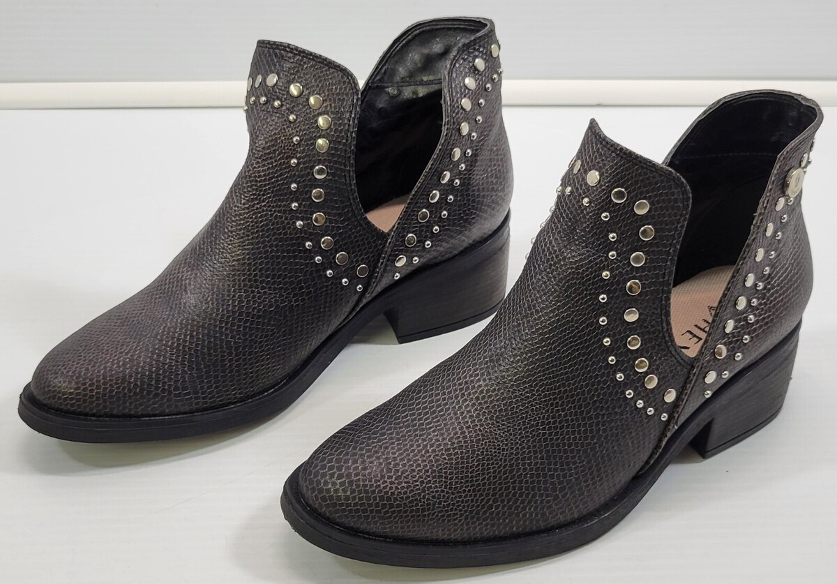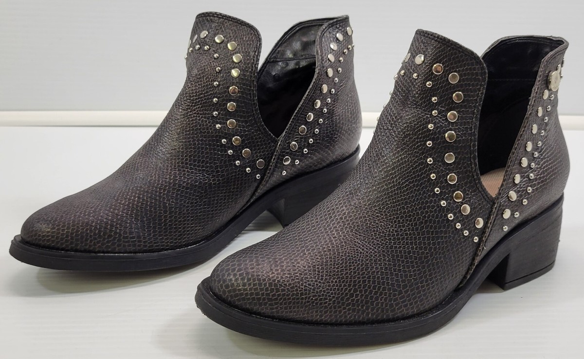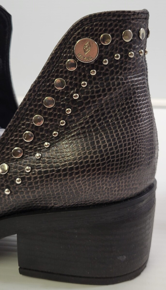 *MT) Heyas Ladies Chunky Leather Ankle Slip-On Studded Boots Size 9
