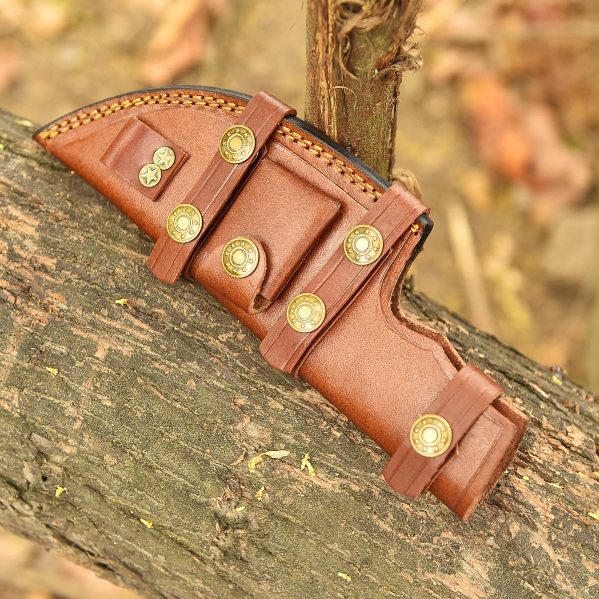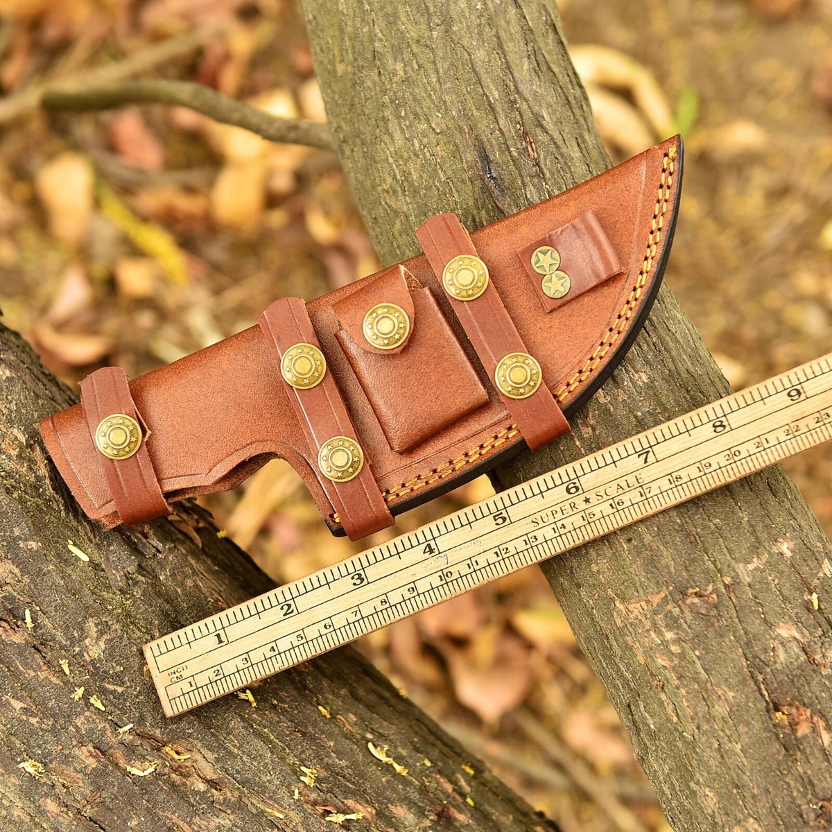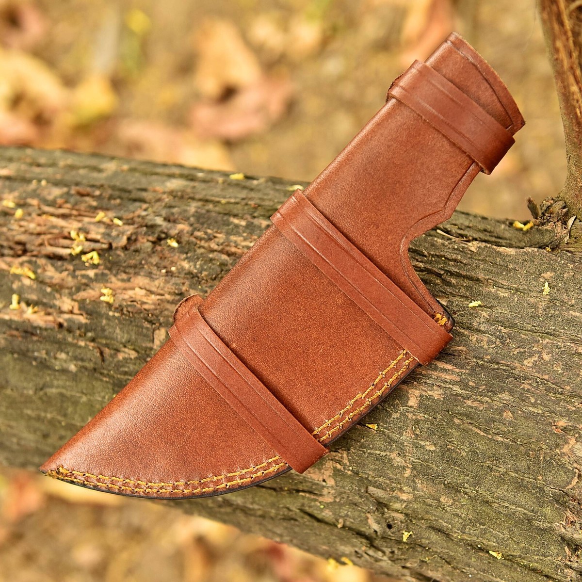 Crafted with precision and durability in mind, this handmade leather sheath is the perfect companion for your 5-inch fixed blade knife. Designed for vertical carry, it offers both style and functionality for everyday use, bushcraft, hunting, or camping.