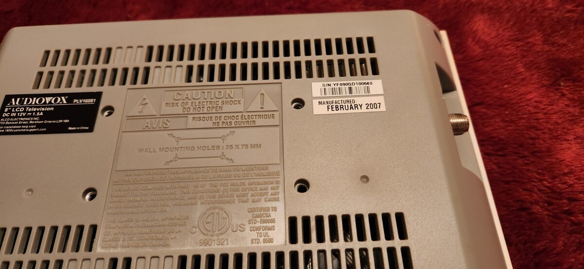 Audiovox 8 Inch LCD Mini Television TV PLV16801