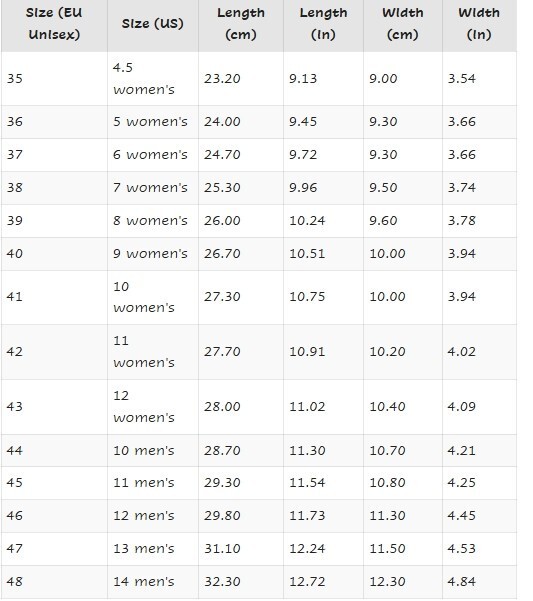 | Tamaño del zapato EUR (mujeres)s: |