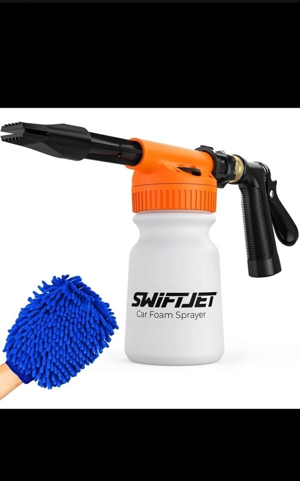 The SwiftJet Car Orange Foam Sprayer with Wash Mitt is a convenient and efficient cleaning tool designed for vehicles, boats, and ATVs. The orange foam sprayer with wash mitt combo is easy to use and provides a thorough cleaning experience. This product by SwiftJet is a reliable choice for keeping your vehicles looking their best with its quality craftsmanship and design.