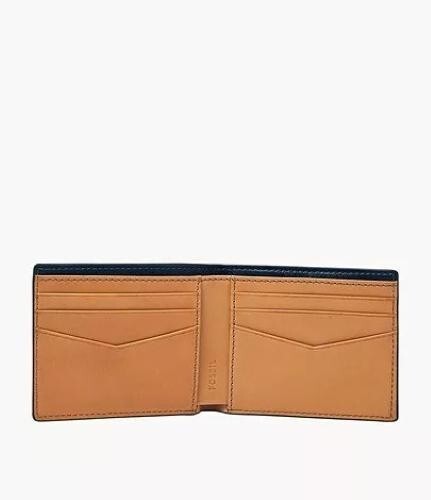 This leather bifold features 1 bill compartment, 2 slide pockets, and 6 credit card slots. Fossil leather products support responsible manufacturing via the Leather Working GroupSku: ML4521406Material: Leather/Leather TrimInterior Material: 100% REPREVE Recycled PolyesterInterior Details: 1 Note Compartment, 2 Slide Pockets, 6 Credit Card SlotsMeasurements: 4.5" L x 0.5" W x 3.5" HSilhouette: Bifold