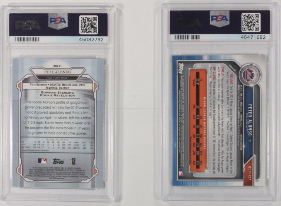 Lot Of 2 PSA 10 Graded 2019 Bowman Pete Alonso Baseball Cards