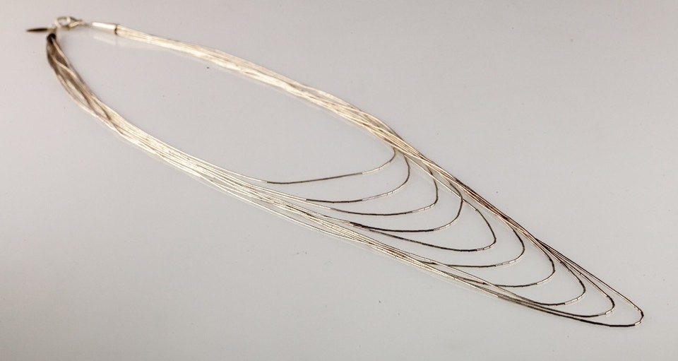 Gorgeous Running Bear Liquid 925 Silver Multi-Strand Bib Necklace 10 Strands 18"