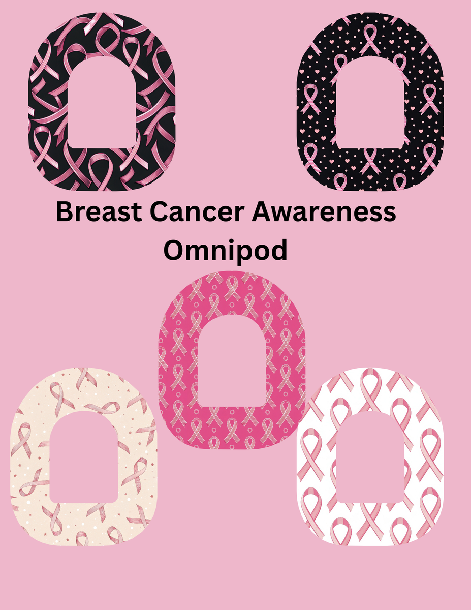 Breast Cancer Awareness CGM Patch, Dexcom G6/Libre/Omnipod Cover (Pack of 5)
