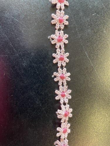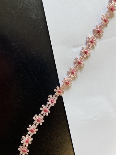 This trim has pink and hot pink daisy flowers that can also be cut into individual flowers to use separately and is 1/2 inch wide.