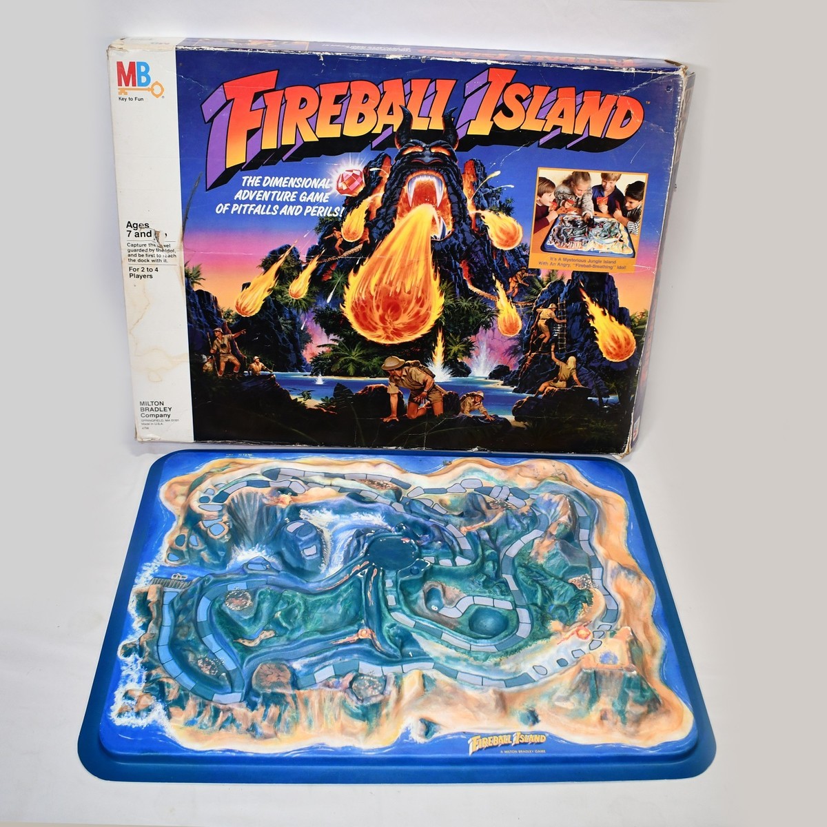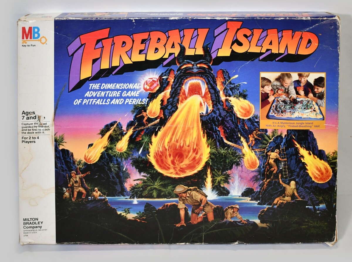 Vintage 1986 Milton Bradley Original FIREBALL ISLAND Board Game BOARD & Box 226!
