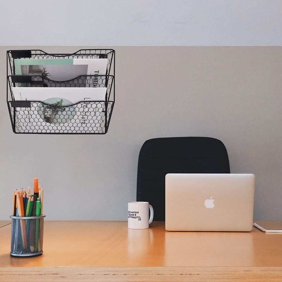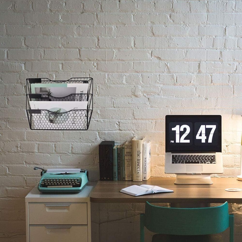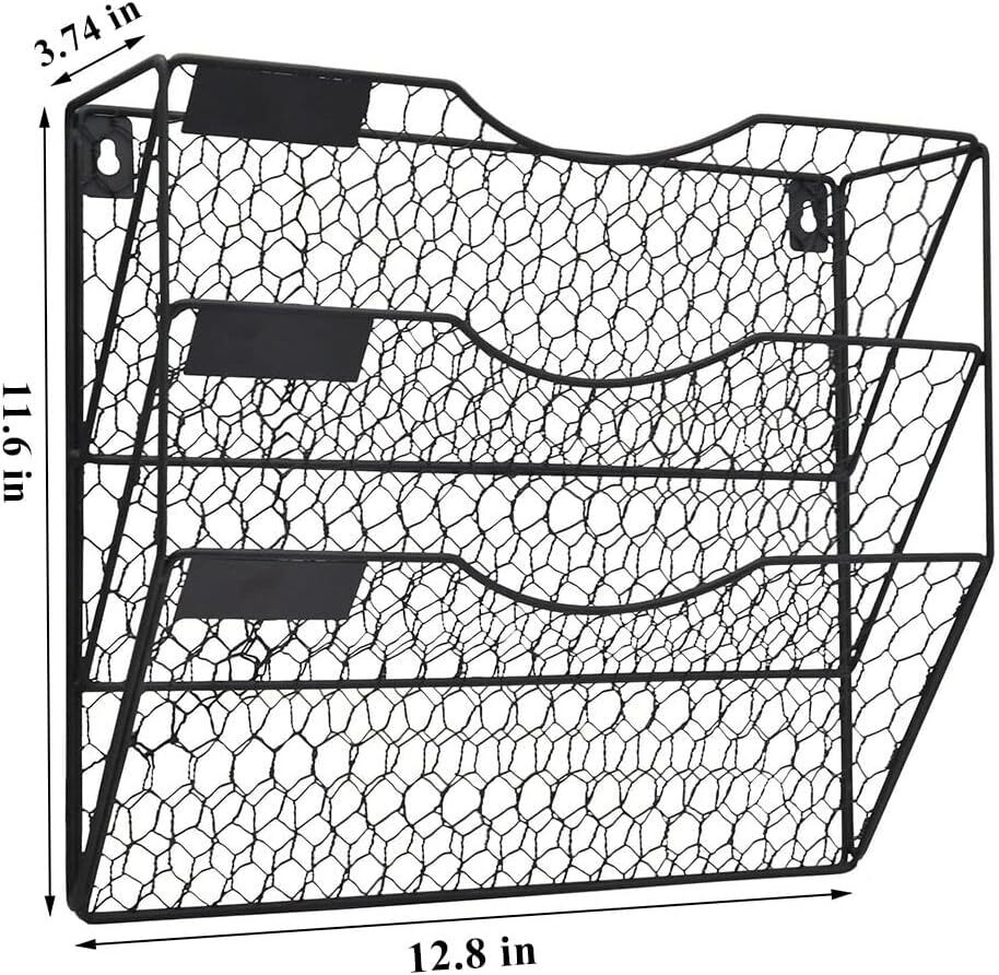 Durable Metal Structure - Made with good craftsmanship the chicken wire design and metal material are built with durability and dependability, sturdy and functional can decorate your walls at the same time Great Office Organization - The wall mount attractive file folder will help you to better organize work space, utilize walls efficiently, clear desktop clutter, work more productively Space Saver - Can easily be added to a variety of spaces without taking up too much real estate, meaning you don't have to sacrifice for organization, take full advantage of your vertical space Convenient Storage Solution - Help categorizes your mail, letters, files, documents. Use it on the wall space behind or next to your desk to keep the things you need within reach and at your fingertips all day, every day Dimensions - 12.8x 3.74x 11.6 inches. Wall mount metal organizer with screws and hardware, easy to mounting on the wall, can be used in any space in your home or office