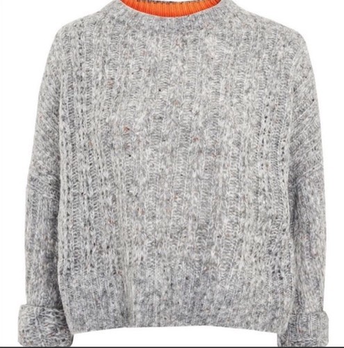 The TopShop gray Perforated Wool Blend sweater in size 4 offers a sophisticated and stylish addition to any woman's wardrobe. Made from a knit fabric with a solid gray color, this long sleeve sweater features a classic crew neck neckline and a pullover style, making it perfect for casual occasions in the winter and autumn seasons. The sweater is machine washable for easy care and maintenance, making it a versatile and practical option for everyday wear. With its modern design and quality construction, this TopShop sweater is sure to become a timeless staple in any woman's closet. Preloved in good condition. TopShop Sweater. Channel a tomboy kind of look with this boxy neppy jumper in soft, grey marl fabric. Pair this versatile design with retro-style jeans for a casual look thats comfortable, cool and totally on-trend. 52% Acrylic, 34% Nylon, 13% Wool, 1% Other. Machine wash. Oversized. 22? armpit to armpit and 20? length. Size 4