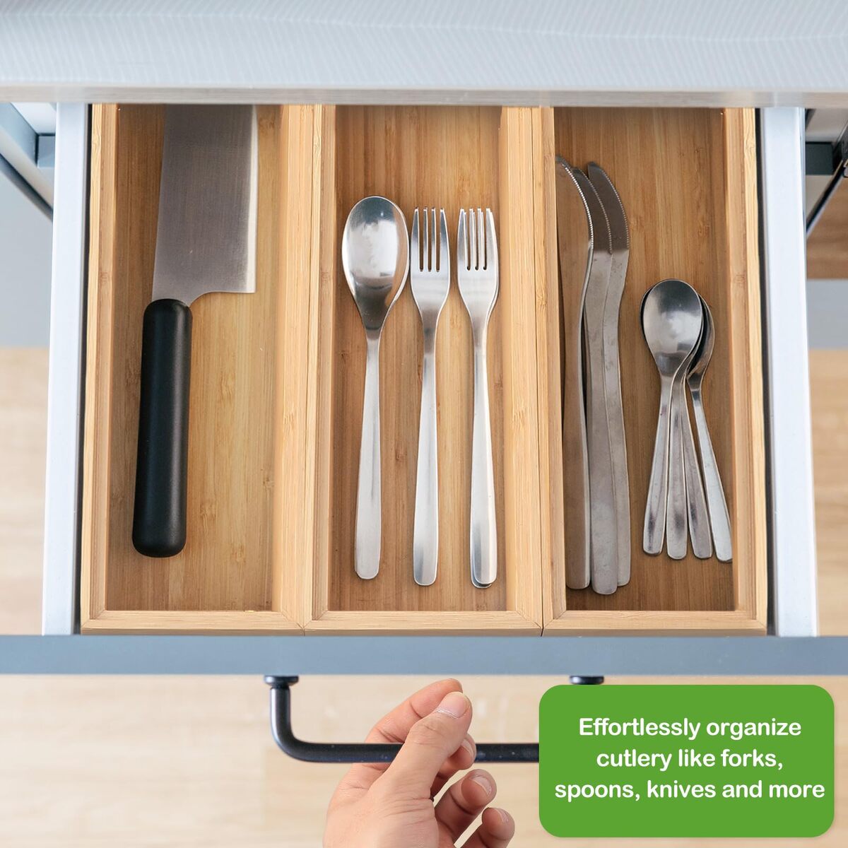 Kigley 8-Piece Bamboo Drawer Organizer Kitchen Utensil Wooden Stackable