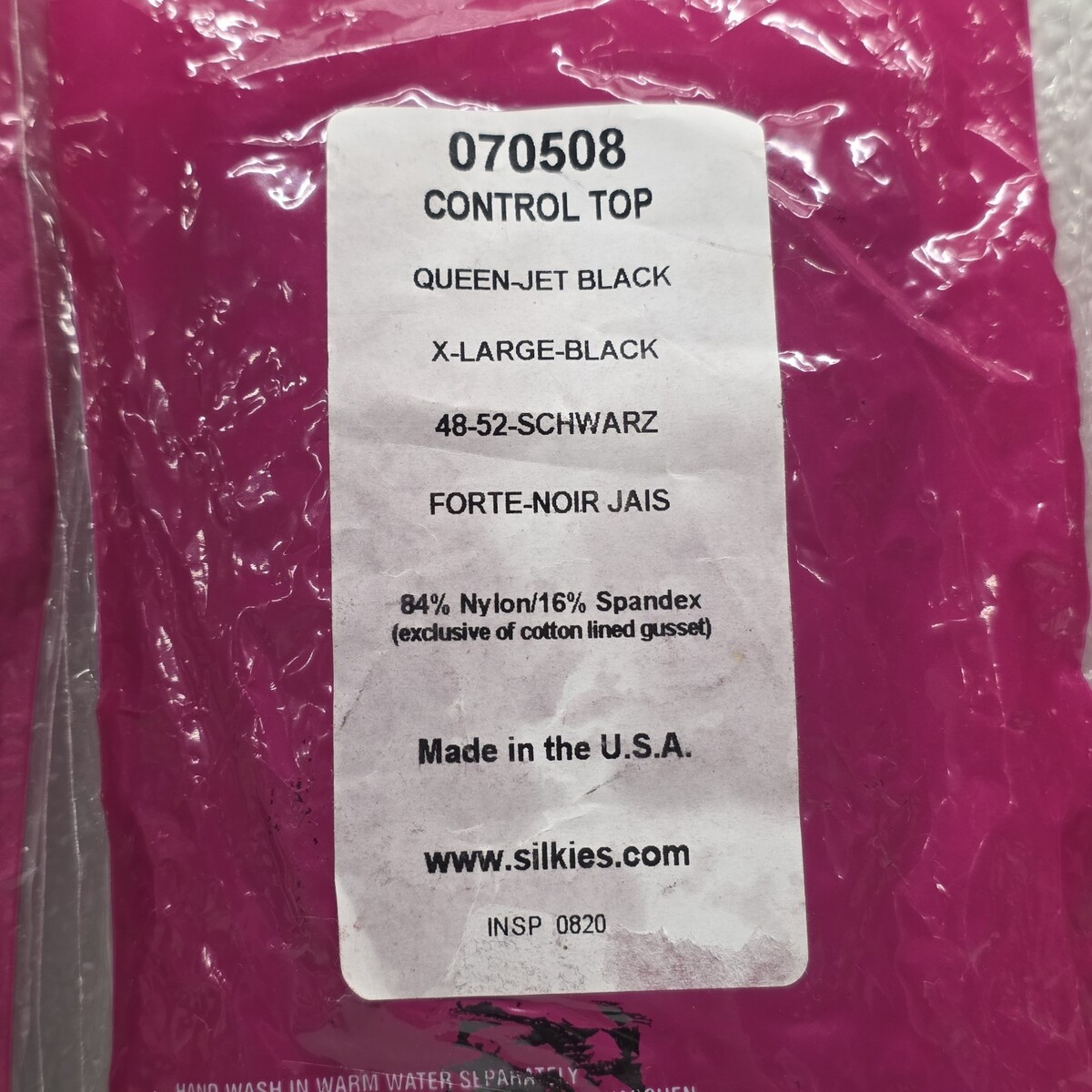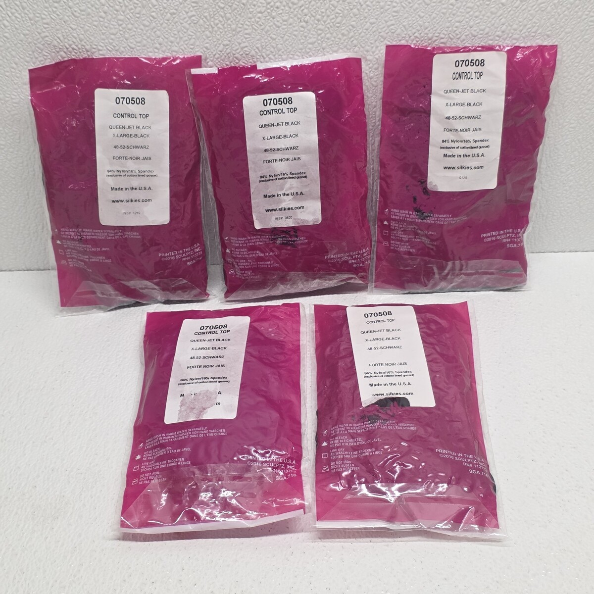 5 Pairs Silkies 070508 Control Top Pantyhose Queen Jet Black XL Made In USA. Images show actual set that will ship.