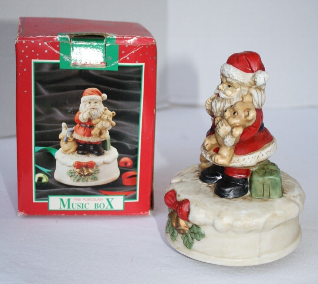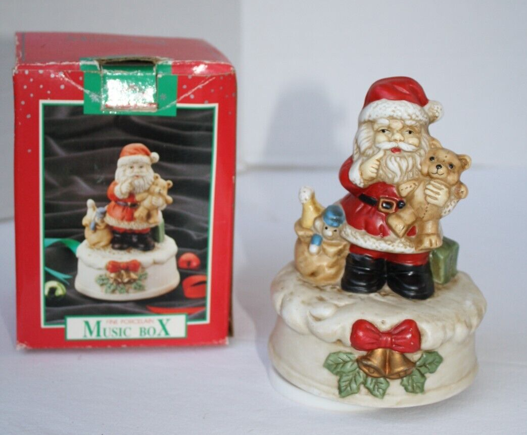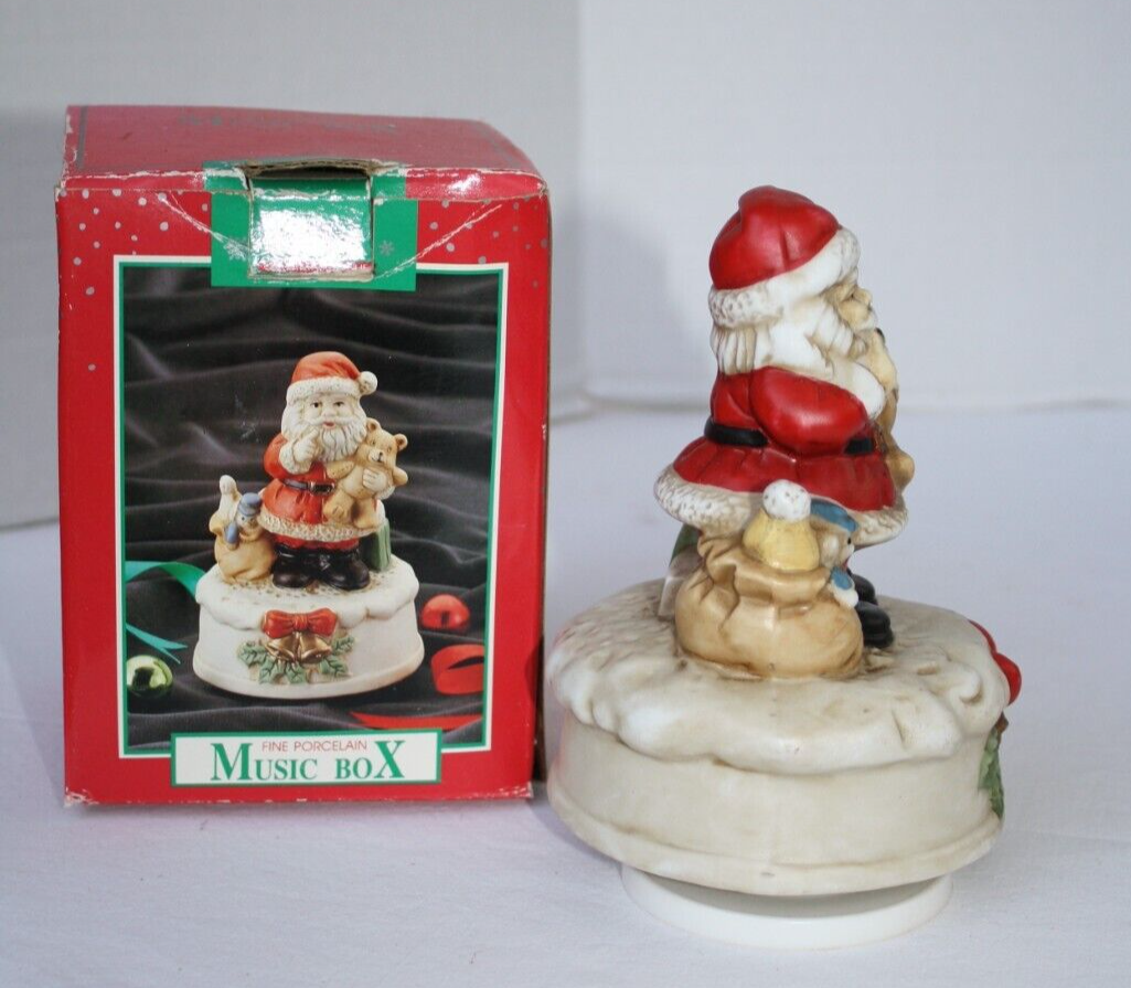 Approx 6", We Wish You A Merry Christmas, Santa Claus, Music Box, Turns, Holiday Decoration, Plays Musical Tune, Porcelain