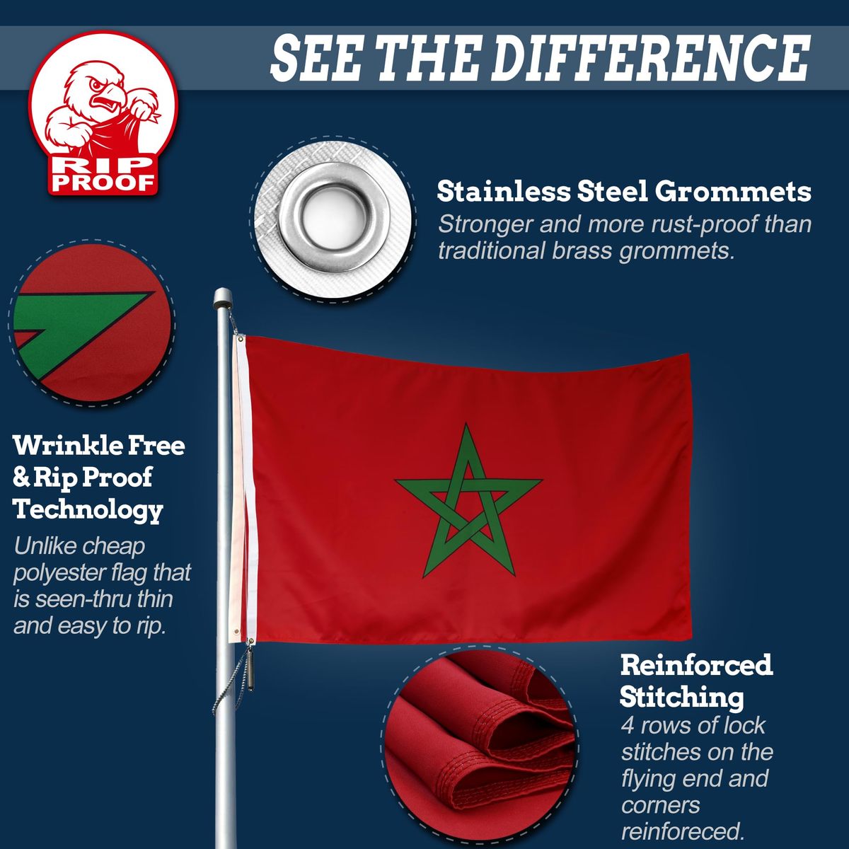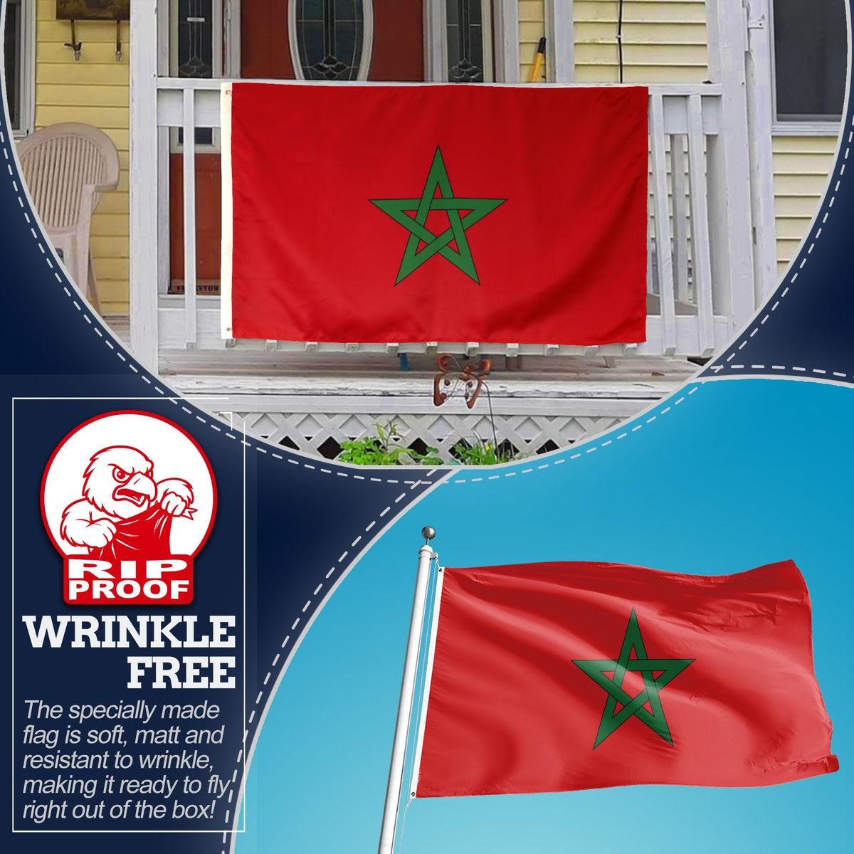 Anley Rip-Proof Double Sided 3-Ply Morocco Flag 3x5 Ft - Vivid Color