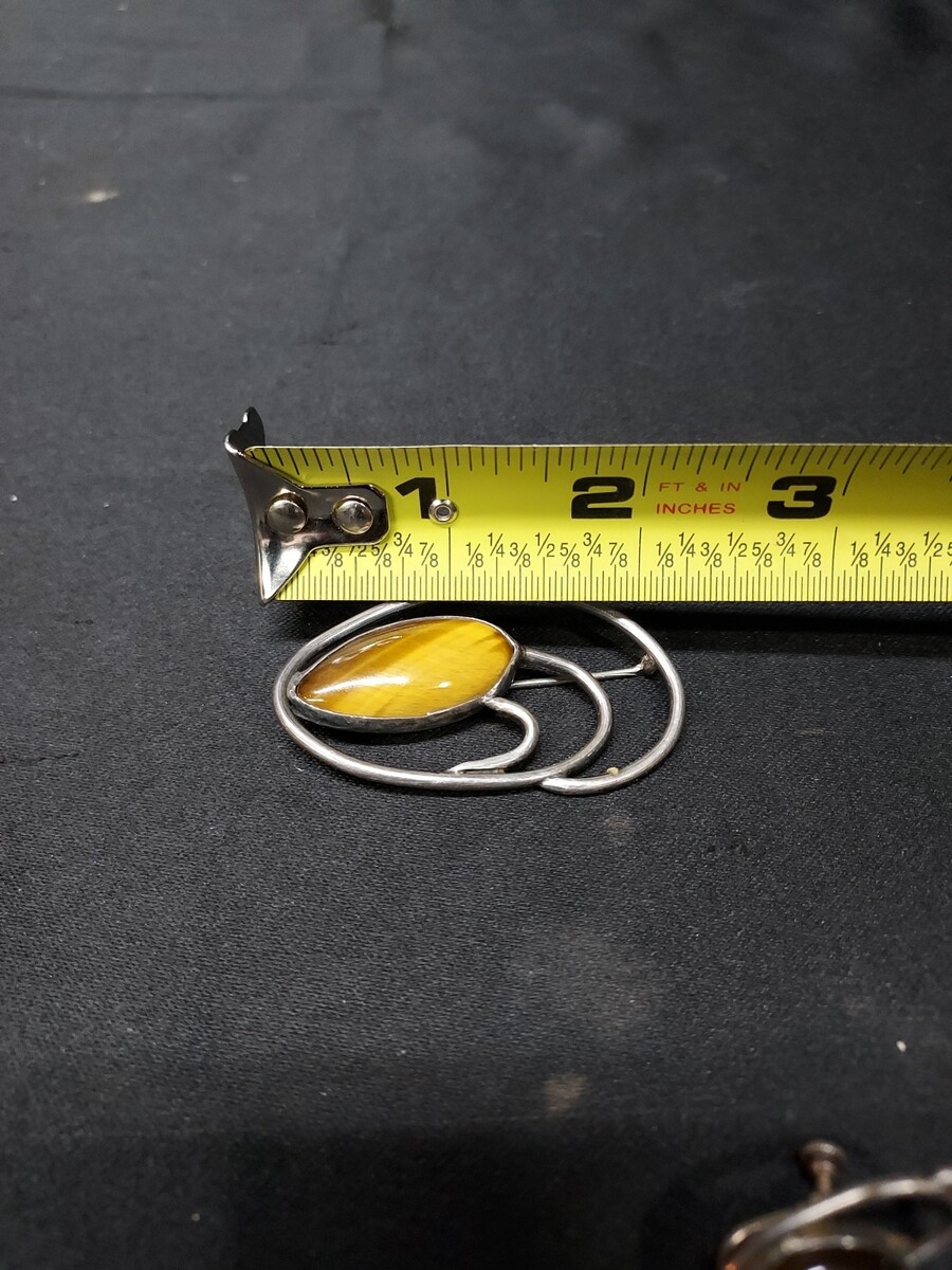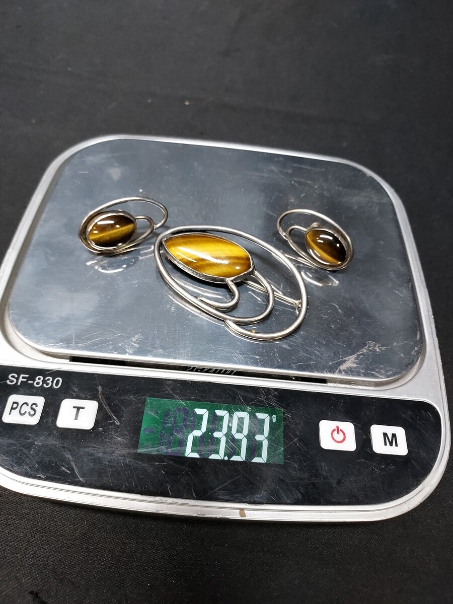 MCM Tiger's Eye Sterling Silver 925 Brooch Pin Earrings Set 23.93 Grams Total. Condition is Pre-owned - Excellent. Shipped with USPS Ground Advantage.