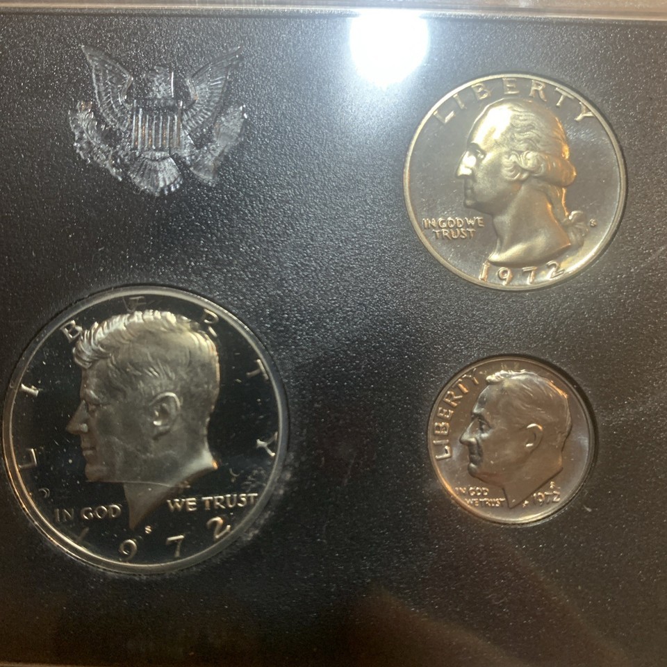 Complete with the original government packaging, the set exudes authenticity and historical value. The coins are certified by the U.S. Mint, ensuring their provenance and quality. Whether you're a seasoned collector or just starting out, this 1972-S Proof Set is a classic addition to any collection, reflecting the craftsmanship and heritage of American coinage.