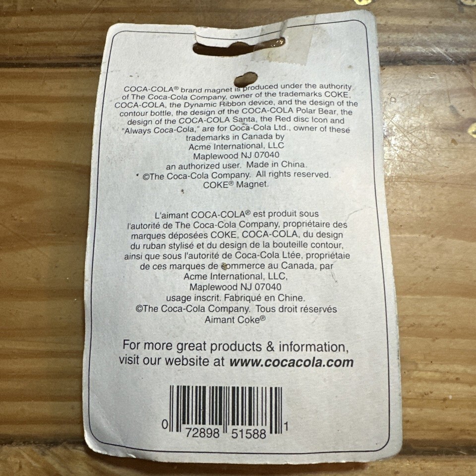 The Vintage Coca Cola Christmas Magnet 1995 with Santa Claus is a collectible decor piece that features the iconic Coca-Cola brand logo and Santa Claus design. This original multi-color magnet is a nostalgic piece of advertising memorabilia that would make a great addition to any Coca-Cola or soda collectibles collection. Perfect for adding a touch of retro charm to your holiday decorations or refrigerator.