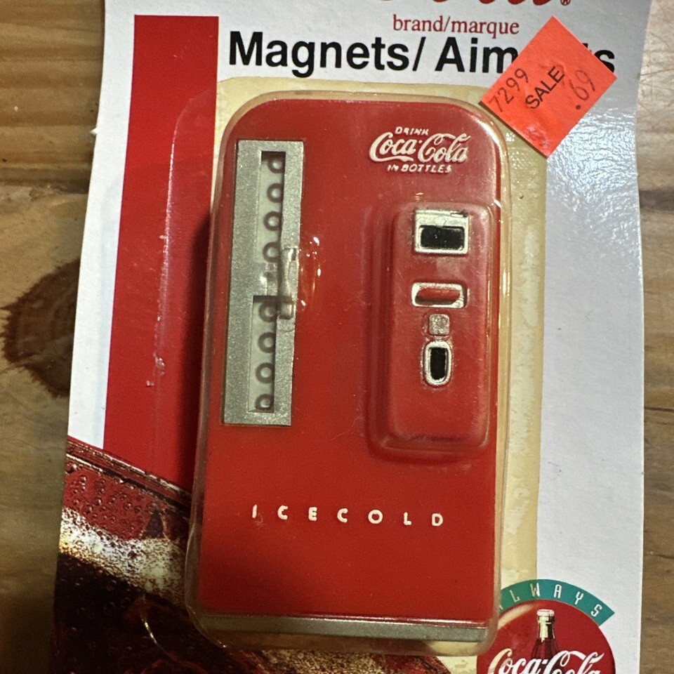 This vintage Coca-Cola vending machine magnet from 1995 is a collectible piece of advertising memorabilia. Featuring the iconic Coca-Cola brand in a multi-color design, this original magnet captures the nostalgia of soda advertising. Perfect for Coca-Cola enthusiasts or collectors of vintage memorabilia, this piece adds a touch of retro charm to any decor.