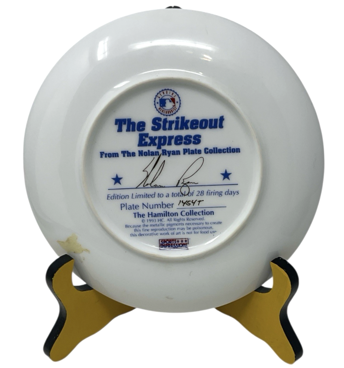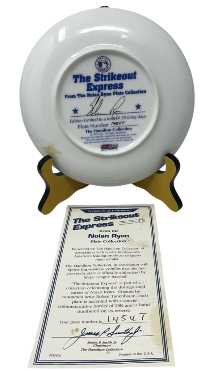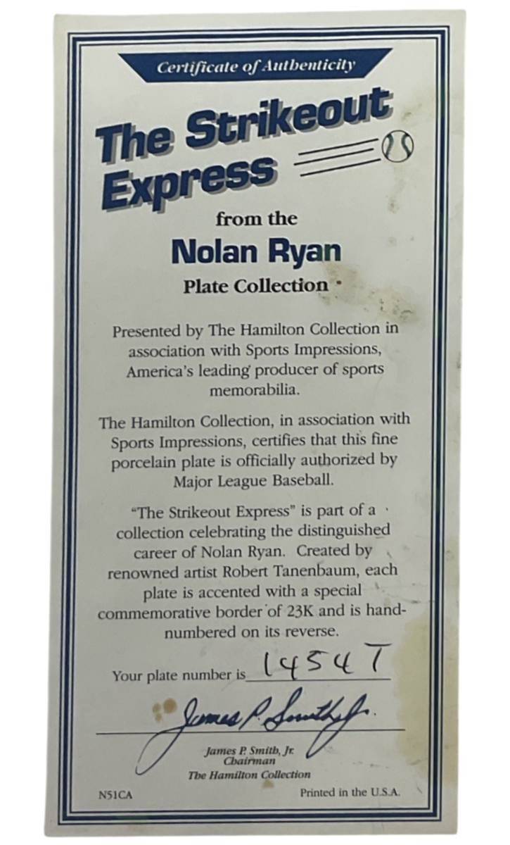1993 Hamilton Collection Nolan Ryan “The Strikeout Express” Plate #1454T w/ COA