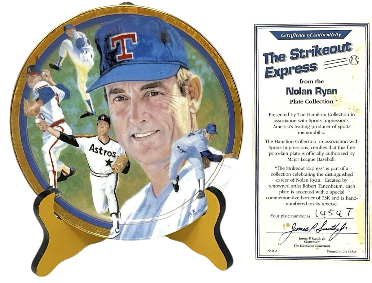 1993 Hamilton Collection Nolan Ryan “The Strikeout Express” Plate #1454T – Limited Edition w/ COA MLB Collectible
