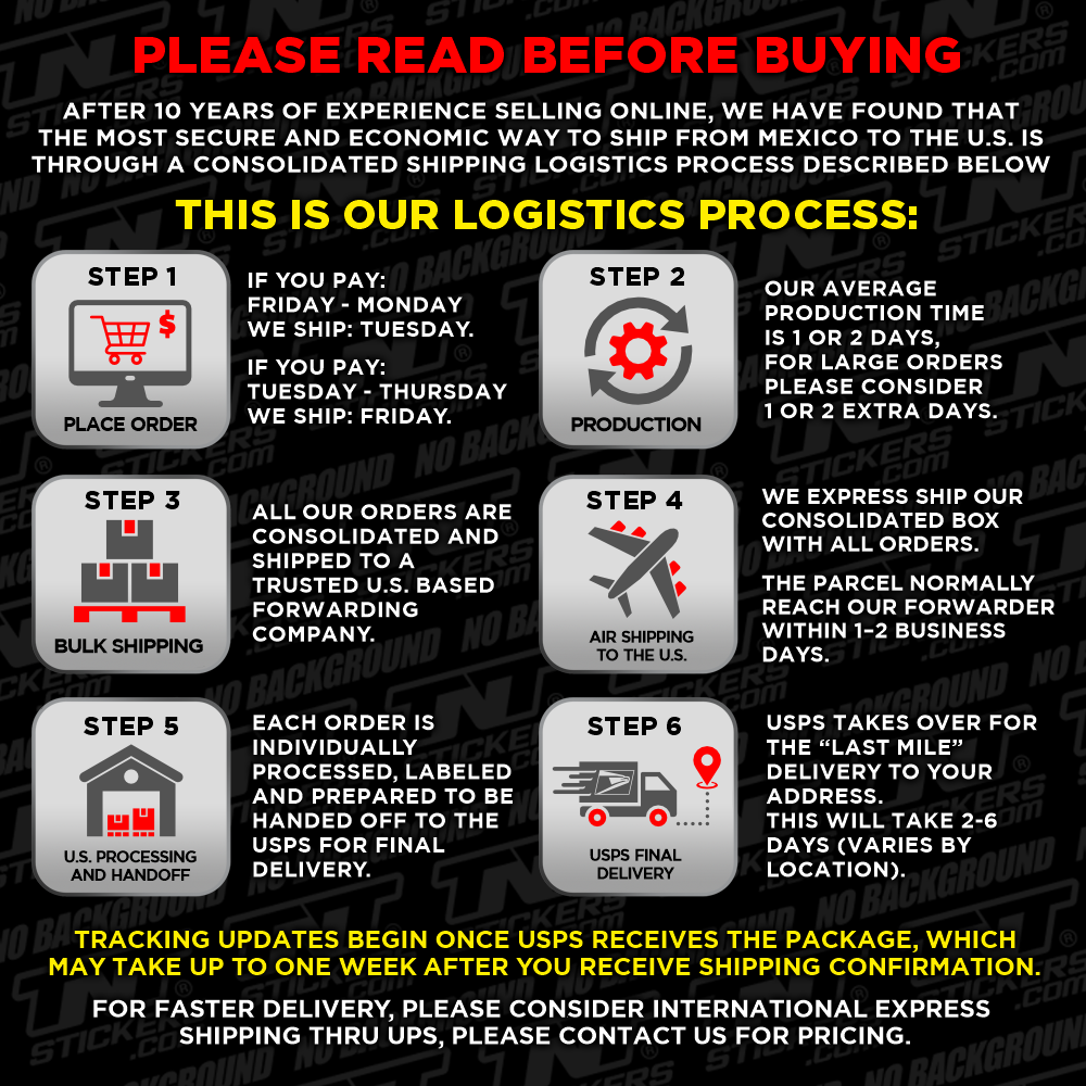 This decal is made from premium waterproof vinyl, suitable for both indoor and outdoor use. It features a smooth finish and strong adhesive that holds well on most clean, flat surfaces.