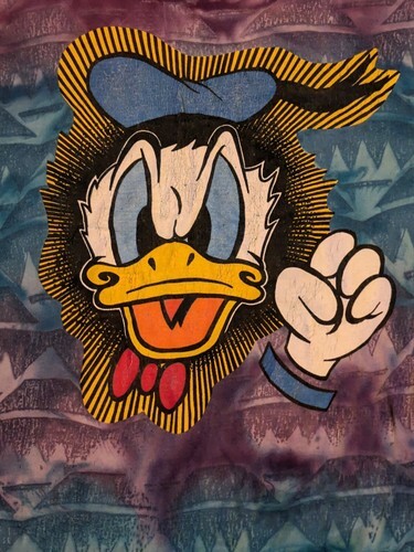 Vintage Donald Ente Hemd Erwachsene Groß Blau Lila Einzel Stich Herren 90s Batik