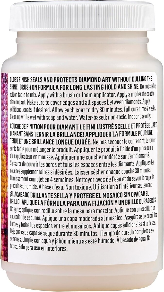 Transform your crafting experience with the 8oz Diamond Top Coat. This all-in-one glue, sealer, and finish not only enhances the beauty of your diamond puzzles but also ensures they remain intact for to come. Whether you are creating stunning decoupage masterpieces or preserving intricate designs, this durable top coat offers a reliable finish with unmatched clarity.