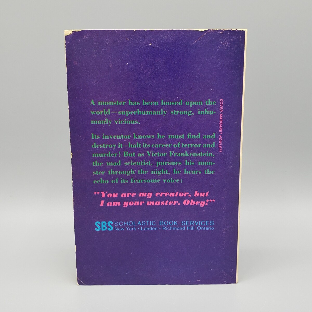Vintage paperback of Frankenstein by Mary Wollstonecraft Shelley, with cover art by Margaret Howlett. It was published by Scholastic Book Services in April 1967 and is numbered SBS T942 on the spine. This book is a 1st printing and measures approximately 6-3/8" tall, 4-3/16" wide, 5/8" thick.