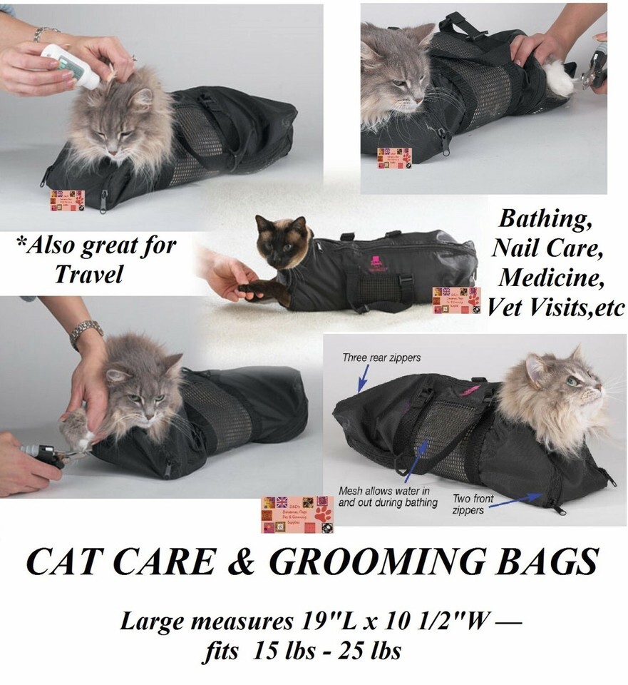 LARGE CAT GROOMING Nail Clip Bath Travel BAG NO BITE SCRATCH RESTRAINT SYSTEM