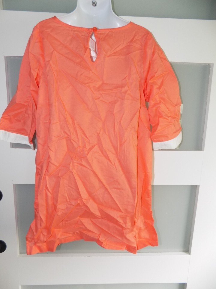 The Janie and Jack Coral Embroidered Tunic Swimsuit Cover Up in size 6 is a stylish and comfortable option for young girls looking to cover up at the beach or pool. Made from lightweight cotton batiste material, this cover-up features a solid coral color with embroidered details, adding a touch of sophistication to any outfit. Machine washable for easy care, this cover-up is perfect for all seasons and can be worn year after year. Perfect for layering over swimwear or as a casual top for everyday wear.