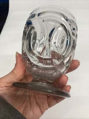 Double Wedding Ring Tumbler Goblet EAPG Clear Glass 1850s-1860 Antique. In good condition with no cracks or chips in the glass. This item measures 4.25?Hx3?Diameter by 3.5? Deep