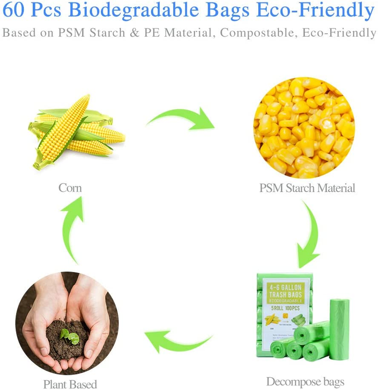 No Smell Safe: These green trash bags are made from plant starches, don't have any smell, friendly to smell sensitive people,bring you a quality life