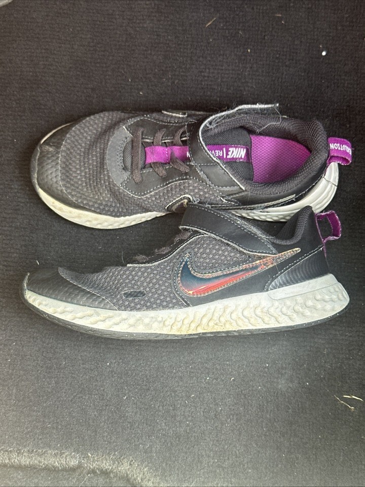 The Nike Running Revolution CZ7148-001 sneakers in size 13C US are a stylish and comfortable choice for casual occasions. Made with a black cotton lining and fabric outsole, these athletic shoes feature Nike's signature style and quality. With a 100% cotton upper and fabric insole, these unisex kids' sneakers are perfect for active kids looking for both style and functionality. Made in the United Kingdom, these athletic sneakers are part of Nike's popular Revolution product line, offering a durable and trendy design for young wearers.
