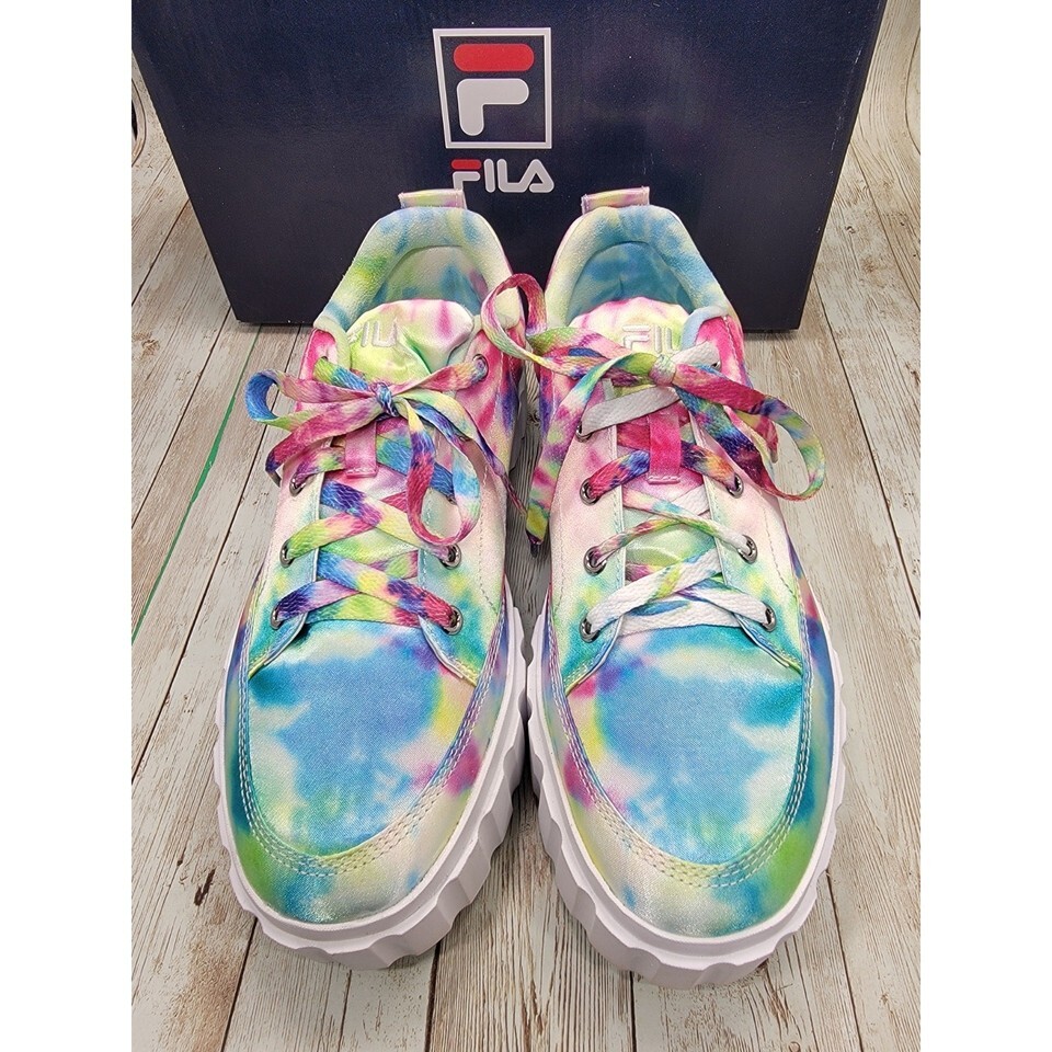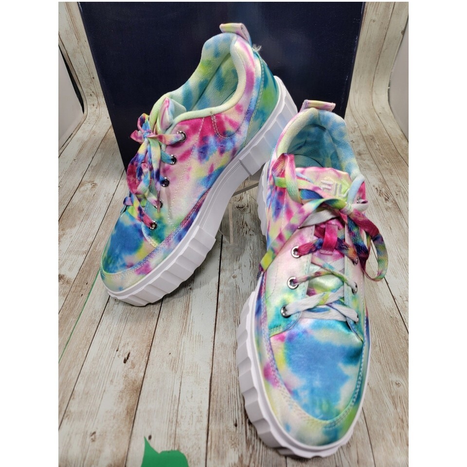 Fila Sandblast Low Tie Dye Sneakers Multi/White Women's Platform Shoes Size 9.5