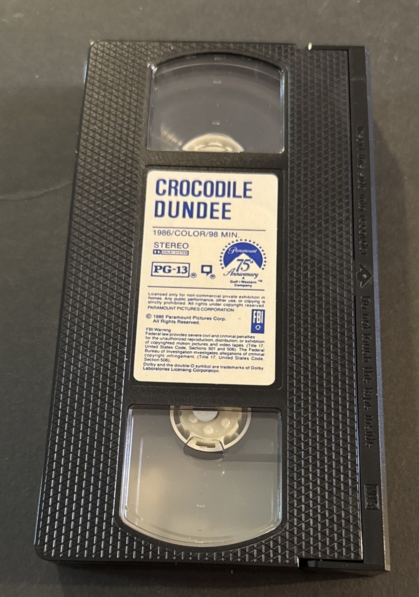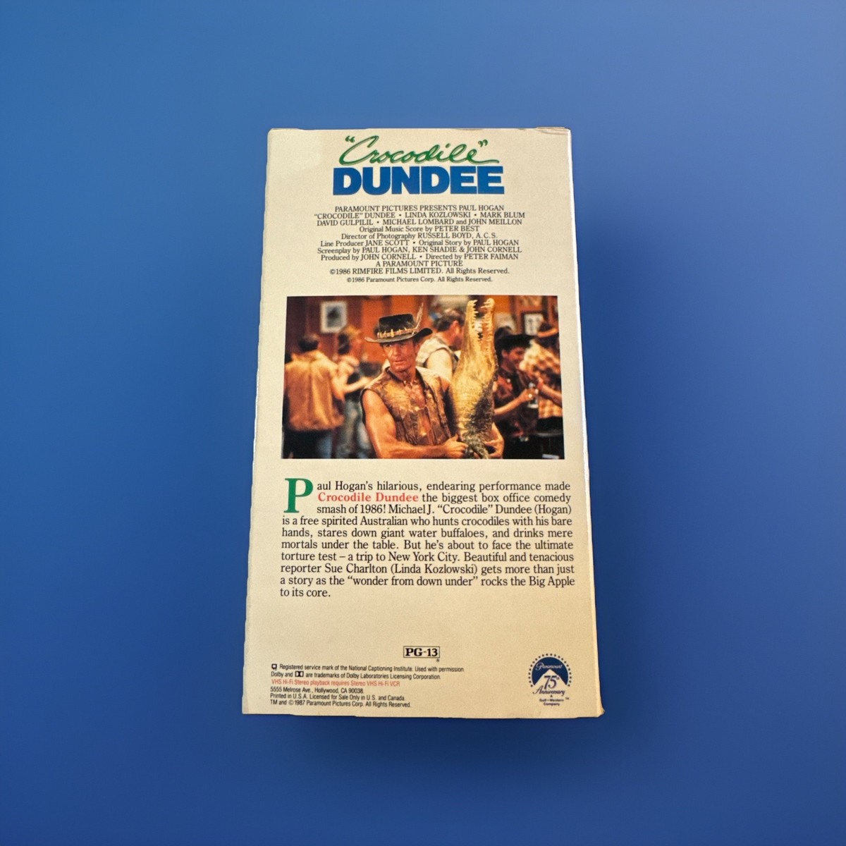 The "Crocodile Dundee VHS" is a comedy movie directed by Peter Faiman and starring Paul Hogan and Linda Kozlowski. The film is rated PG-13 and follows the adventures of a man who travels to Australia to live with a charming crocodile. This VHS tape features the NTSC signal standard, making it compatible with VHS players in the United States and other NTSC regions. Fans of light-hearted comedies and Australian humor will enjoy this classic film on VHS.